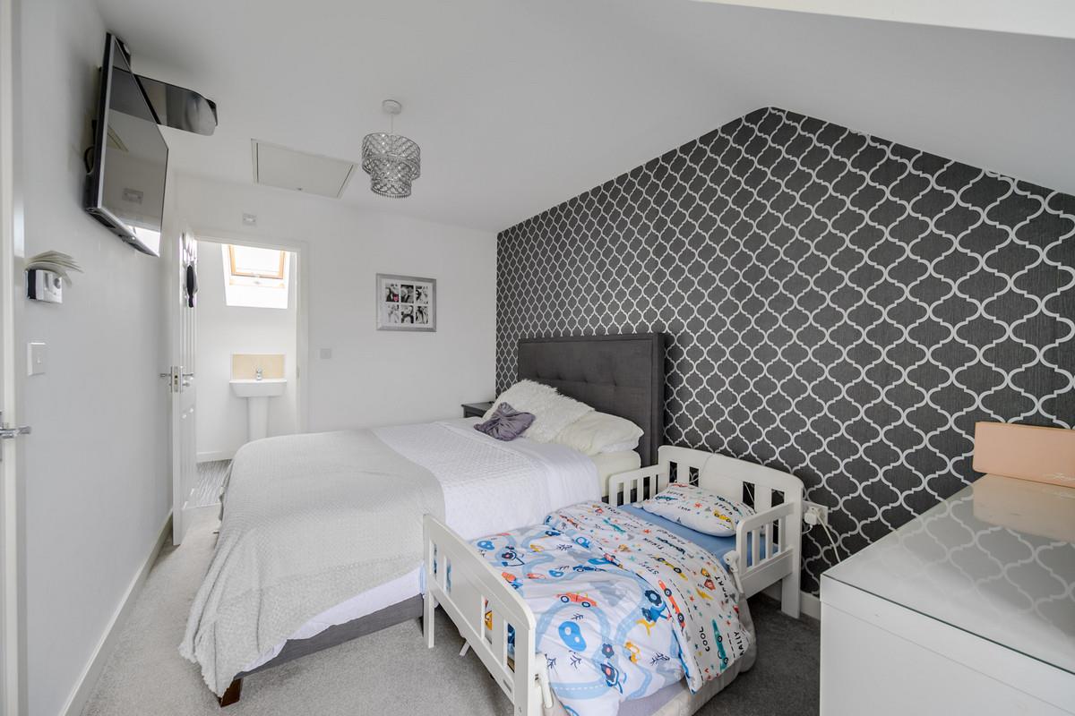 Head up to the first floor to find two double bedrooms, one to the front aspect and one to the rear, with the family bathroom nestled in the middle. Continuing up to the next floor is the master bedroom which also has built in storage and a fabulous sized ensuite.