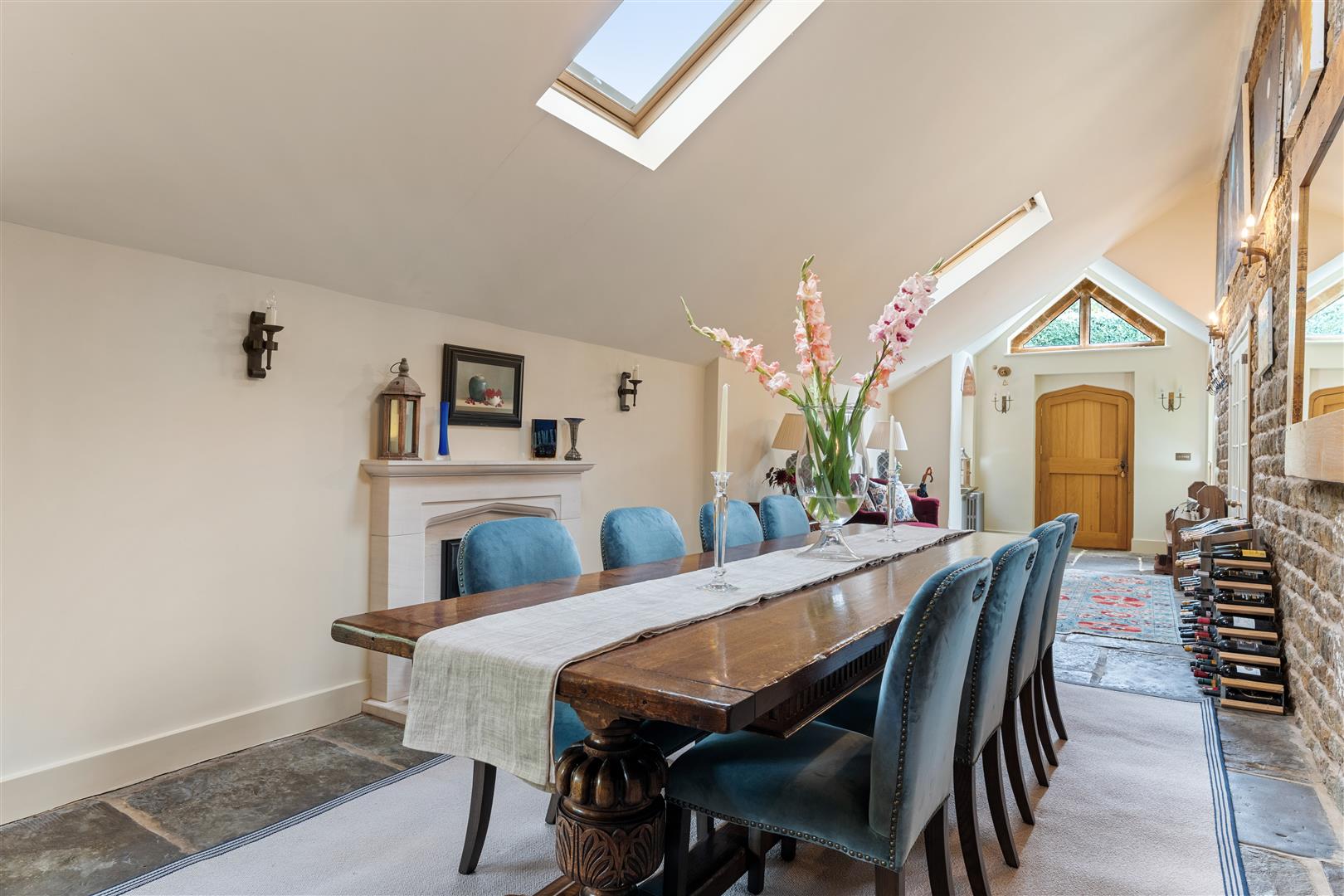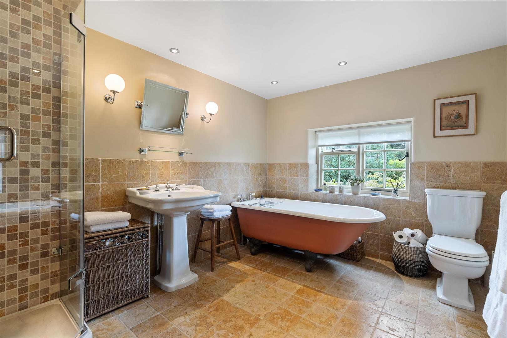 The ground floor is both welcoming and impressive, centred around a light-filled dining hall with skylights. There is a spacious drawing room, cosy sitting room and study, all rich in character. At the heart of the home sits a Fraser James-designed farmhouse kitchen with Aga, ideal for family life and entertaining, with a utility/boot room and Fired Earth cloakroom adjoining.