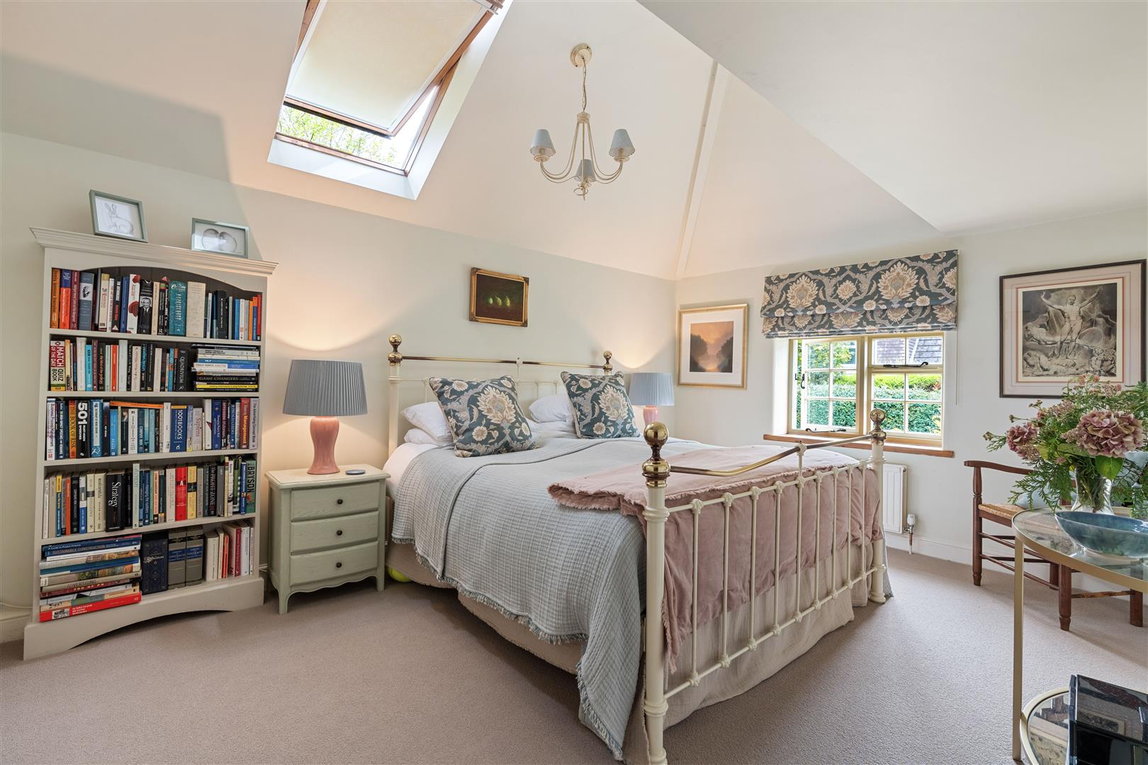 Upstairs are five generous double bedrooms, two bathrooms and a separate Fired Earth shower room. A peaceful library overlooking the garden provides a wonderful retreat, while original features such as open fireplaces enhance the home’s historic charm throughout.