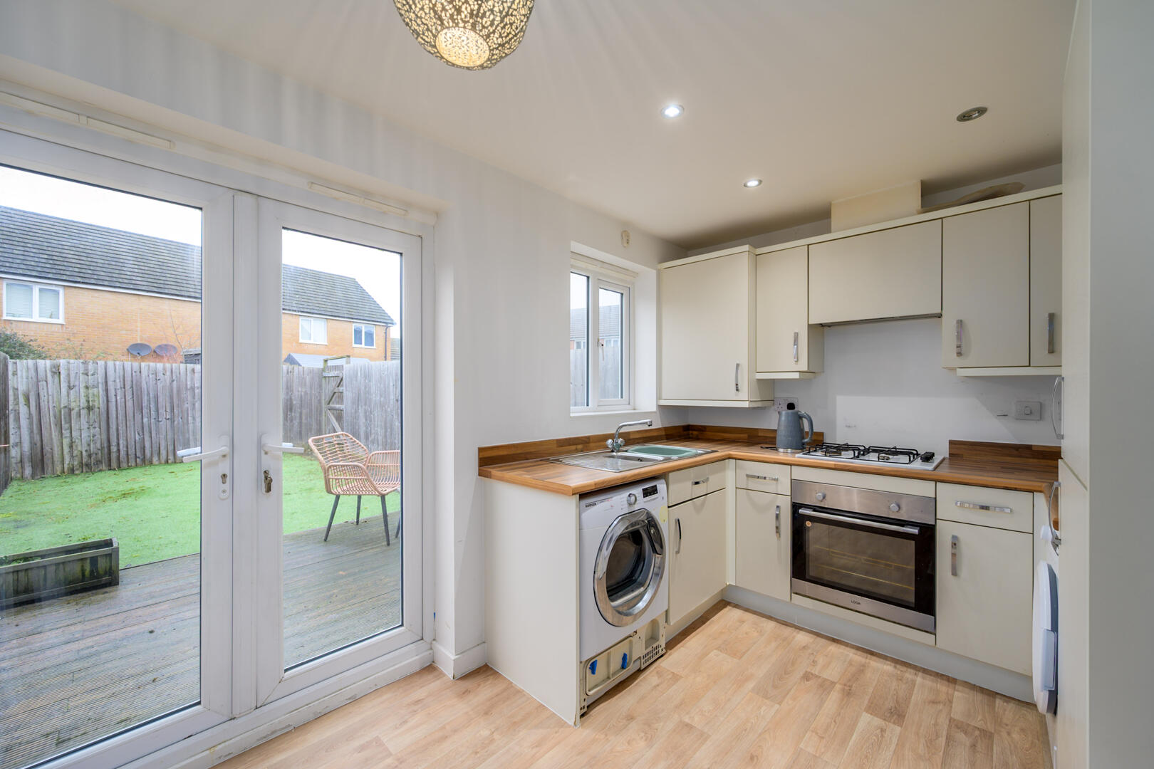 The heart of the home is the well designed kitchen diner, which boasts a contemporary layout and ample space for dining. The patio doors invite an abundance of natural light and lead directly to the south-facing rear garden, creating a delightful outdoor space ideal for al fresco dining, gardening, or simply enjoying the fresh air.