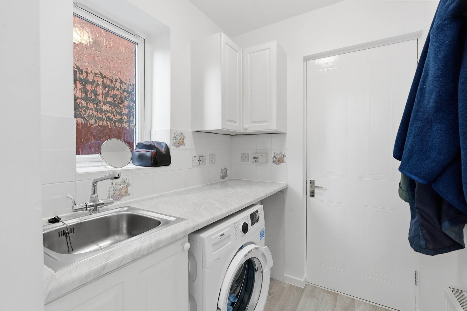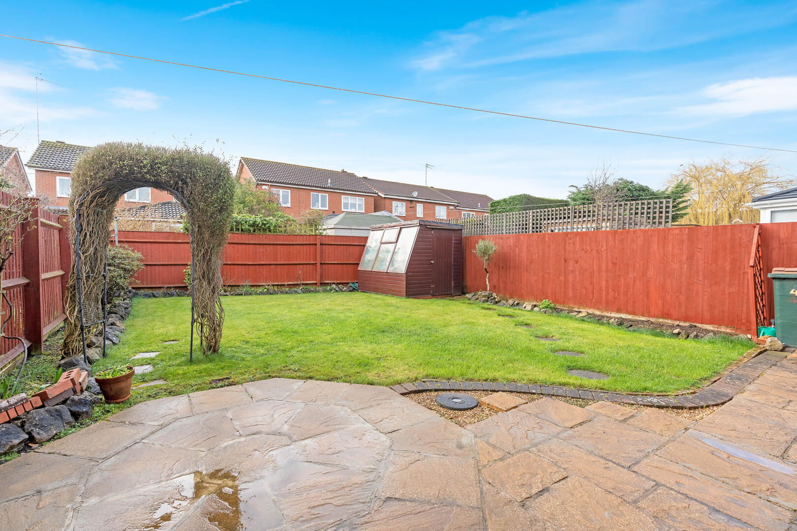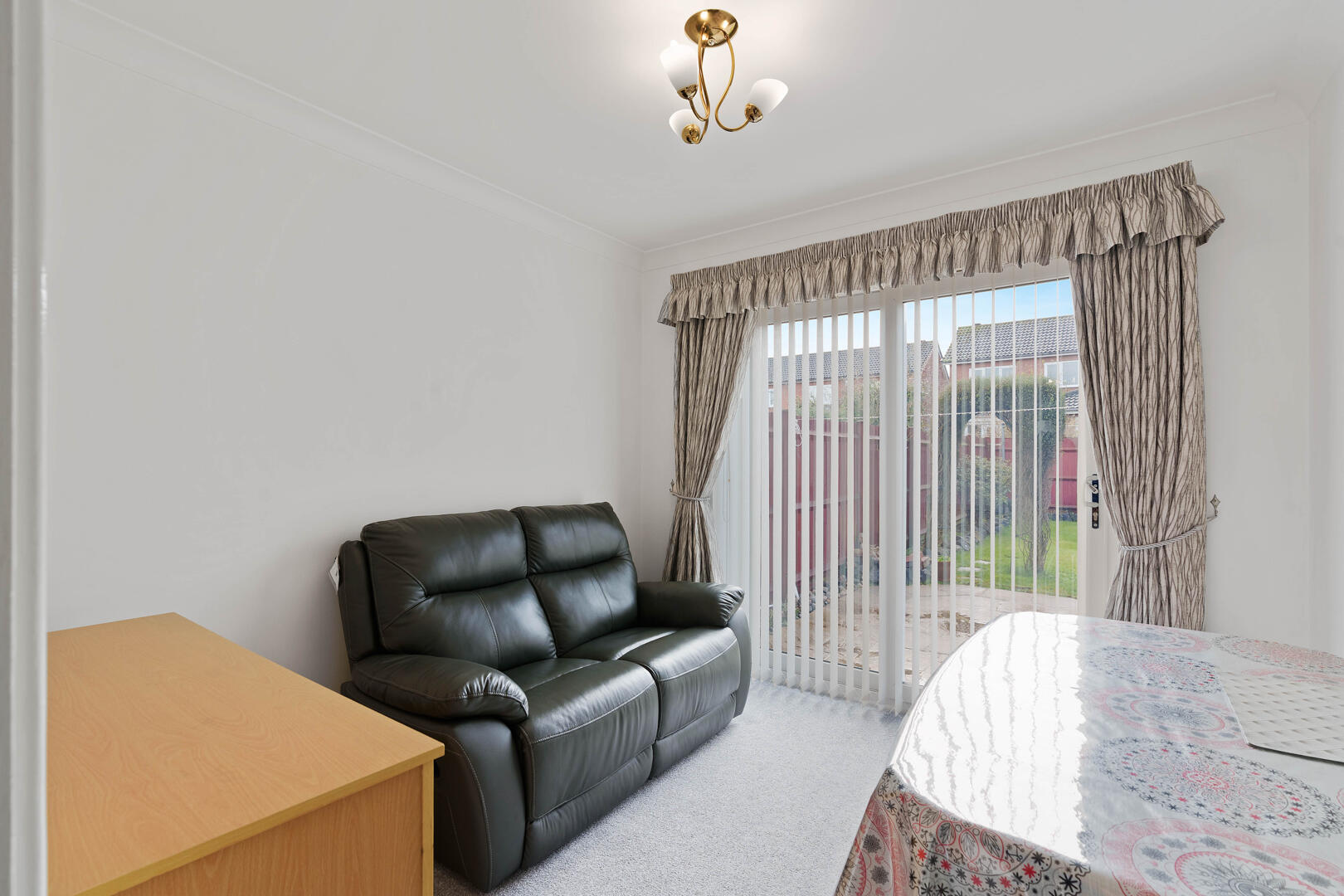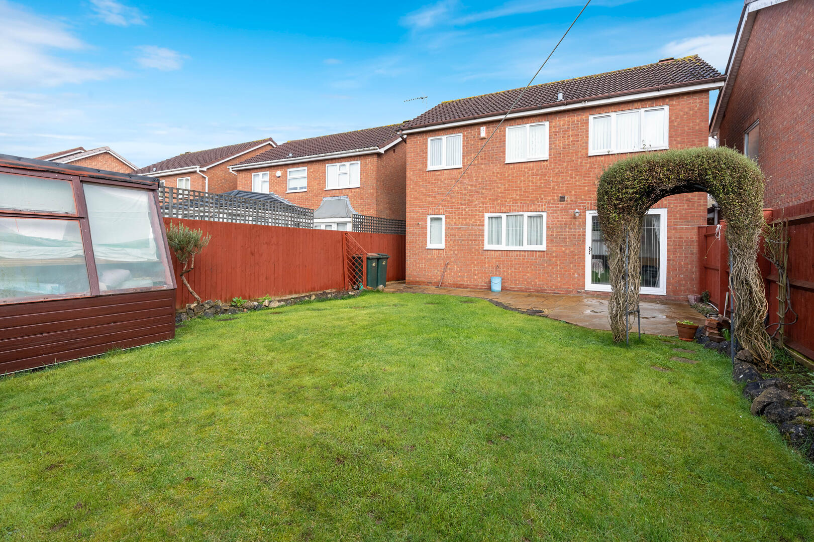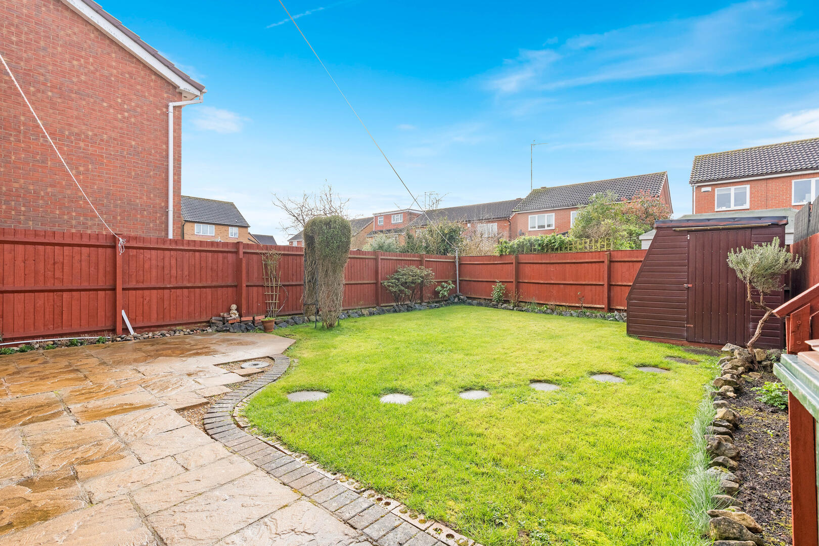 Externally, the rear garden is private and neatly maintained, featuring a patio area ideal for outdoor dining, a lawned section and mature borders. The property is fully enclosed, making it suitable for families and pets alike.