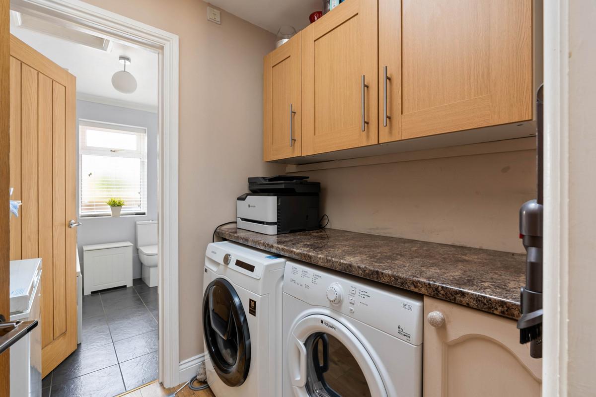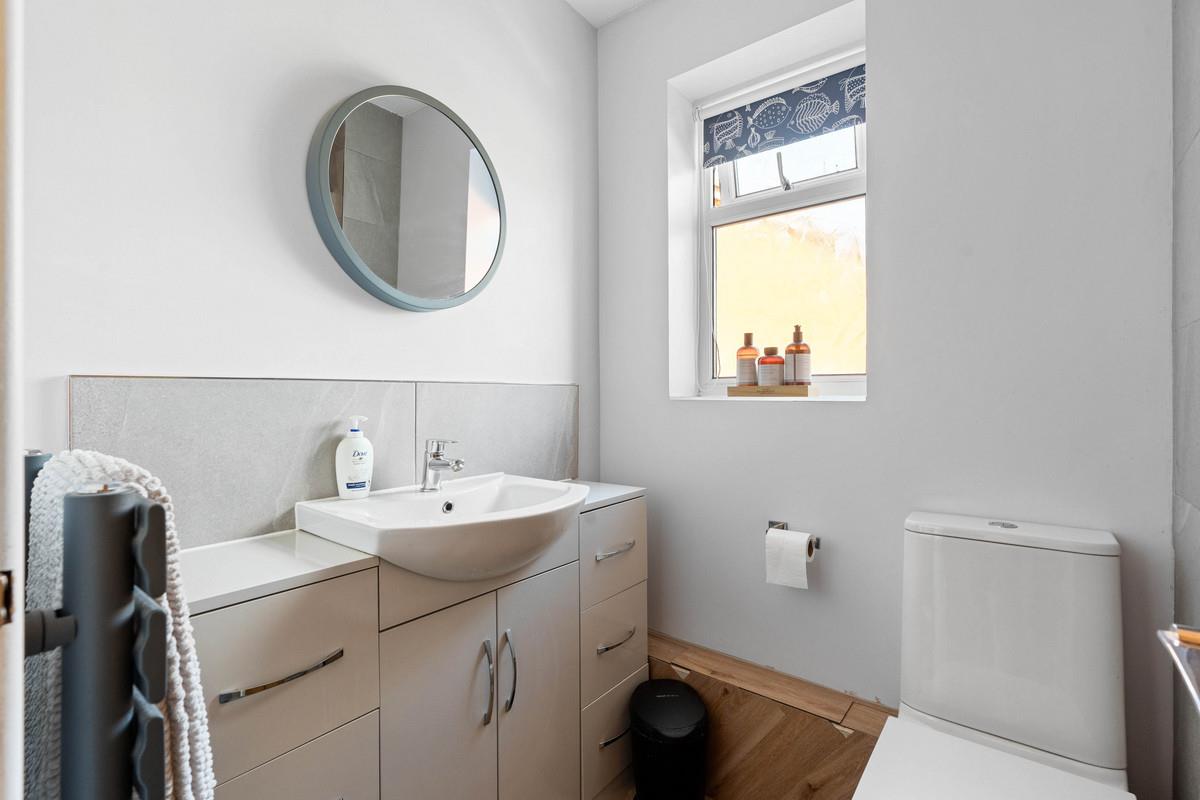 The ground floor also includes a modern additional bathroom and a well-equipped utility room. Upstairs, you'll find two comfortable bedrooms and a stylish family bathroom.