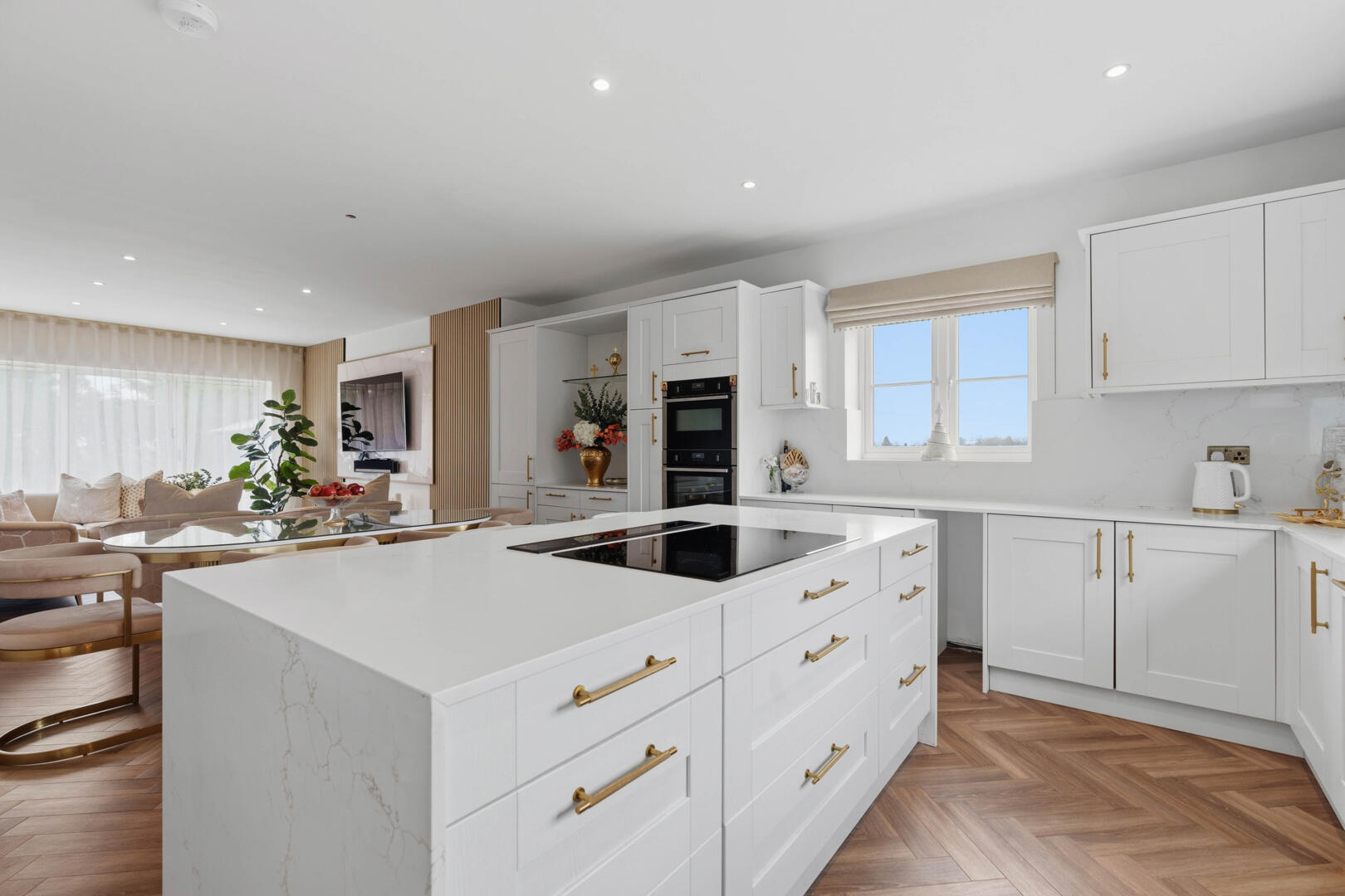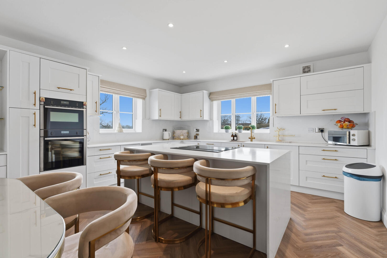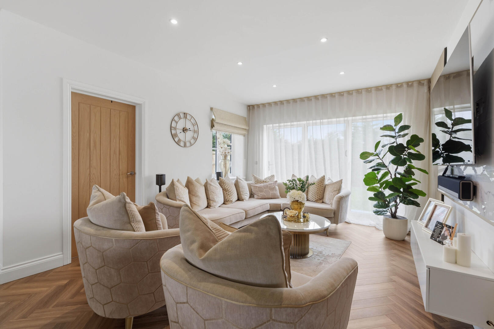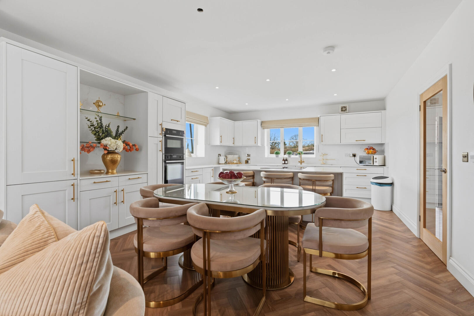 This beautifully designed home provides generous and versatile accommodation throughout. The property boasts five double bedrooms, four of which benefit from their own en-suite bathrooms, creating the perfect layout for modern family living. The fifth bedroom is currently utilised as a luxurious walk-in wardrobe, but can easily be reinstated as a bedroom if required.