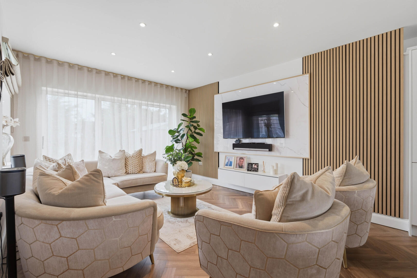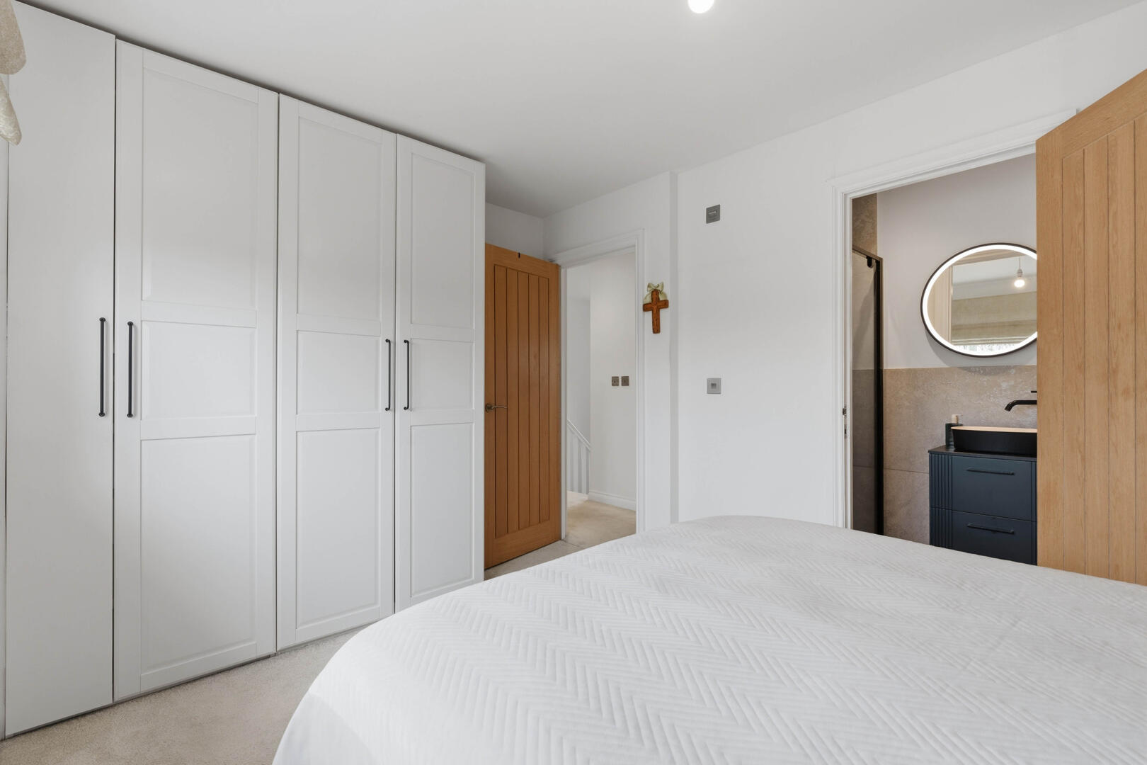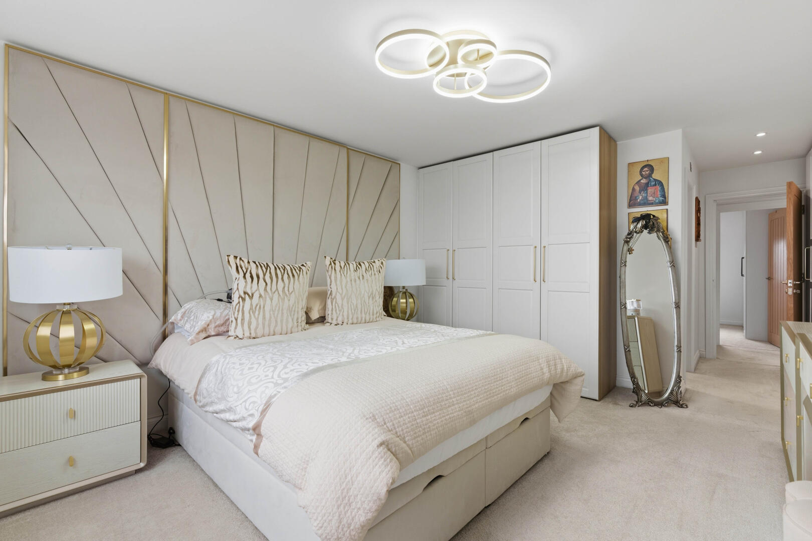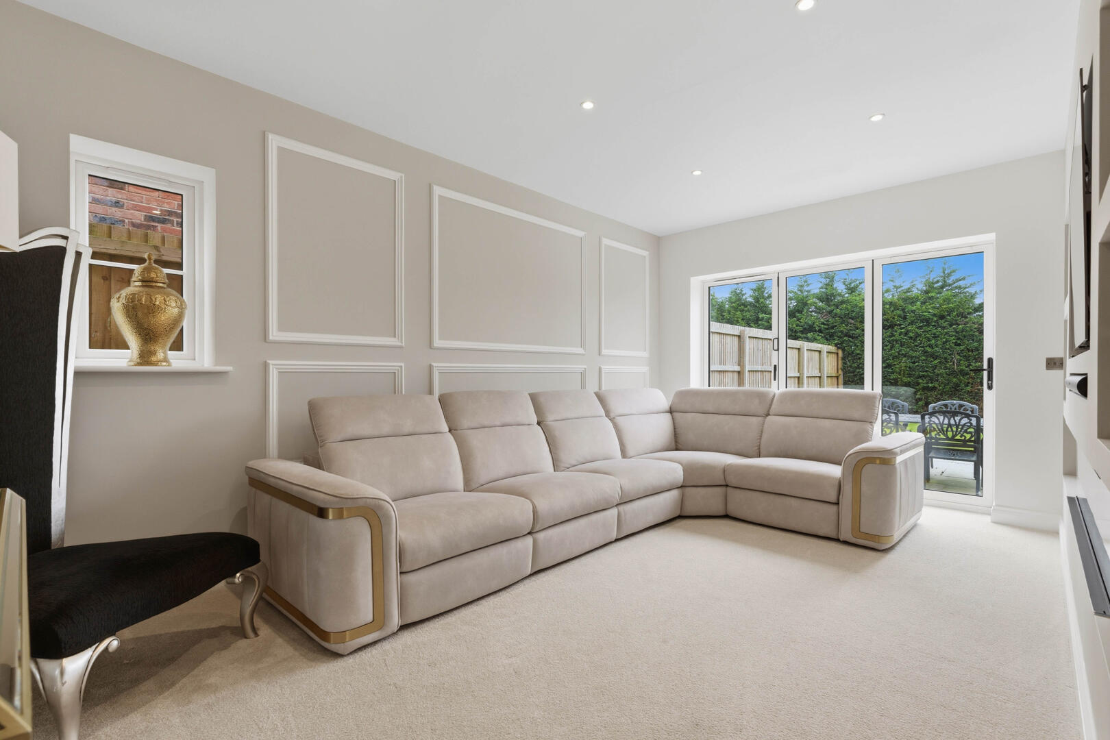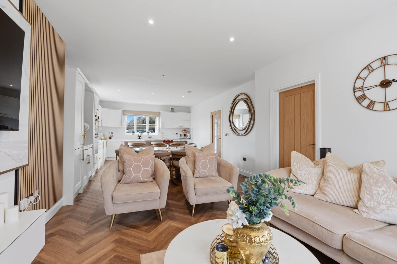 This beautifully designed home provides generous and versatile accommodation throughout. The property boasts five double bedrooms, four of which benefit from their own en-suite bathrooms, creating the perfect layout for modern family living. The fifth bedroom is currently utilised as a luxurious walk-in wardrobe, but can easily be reinstated as a bedroom if required.