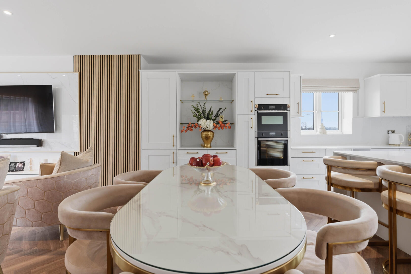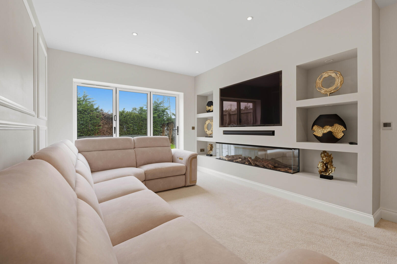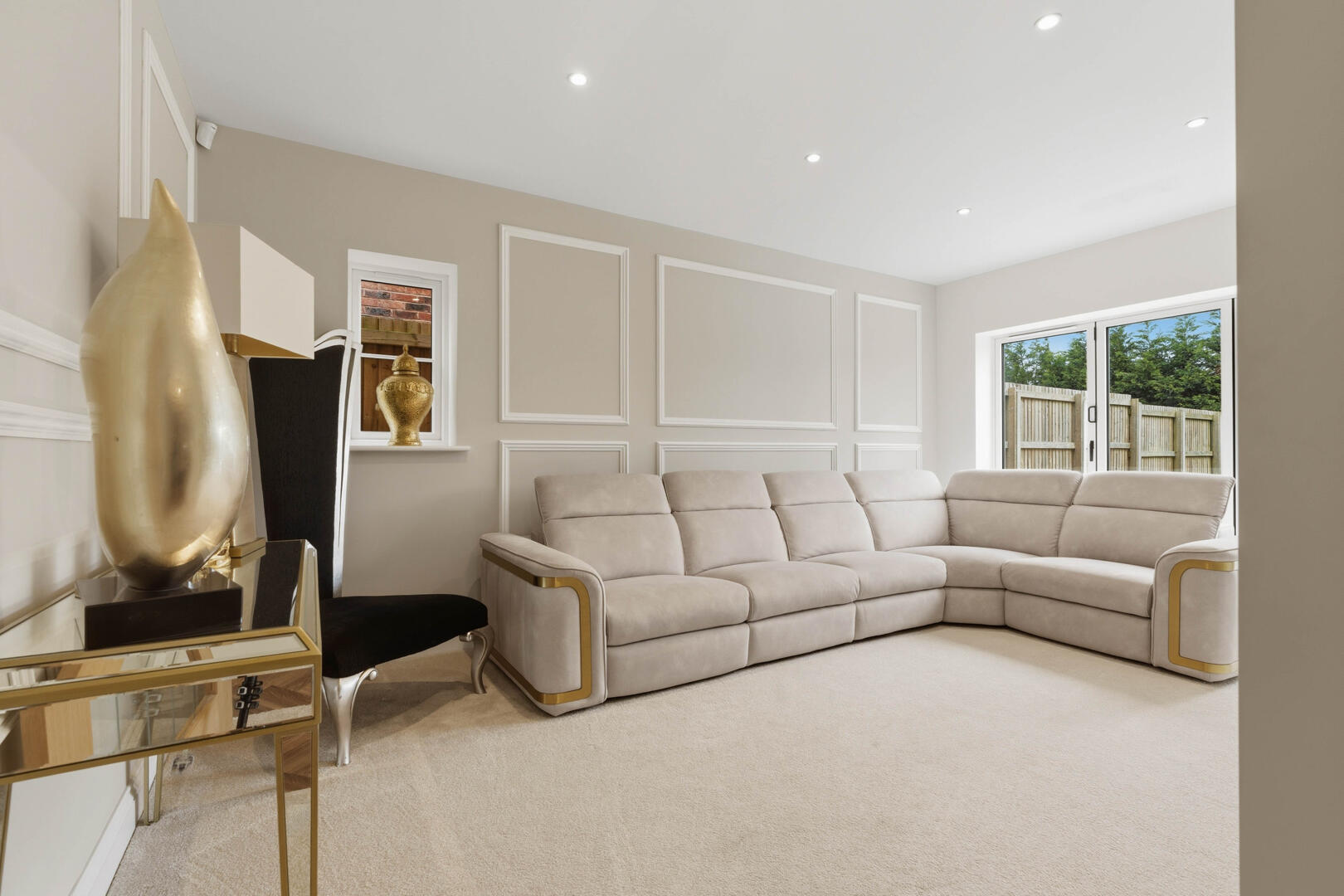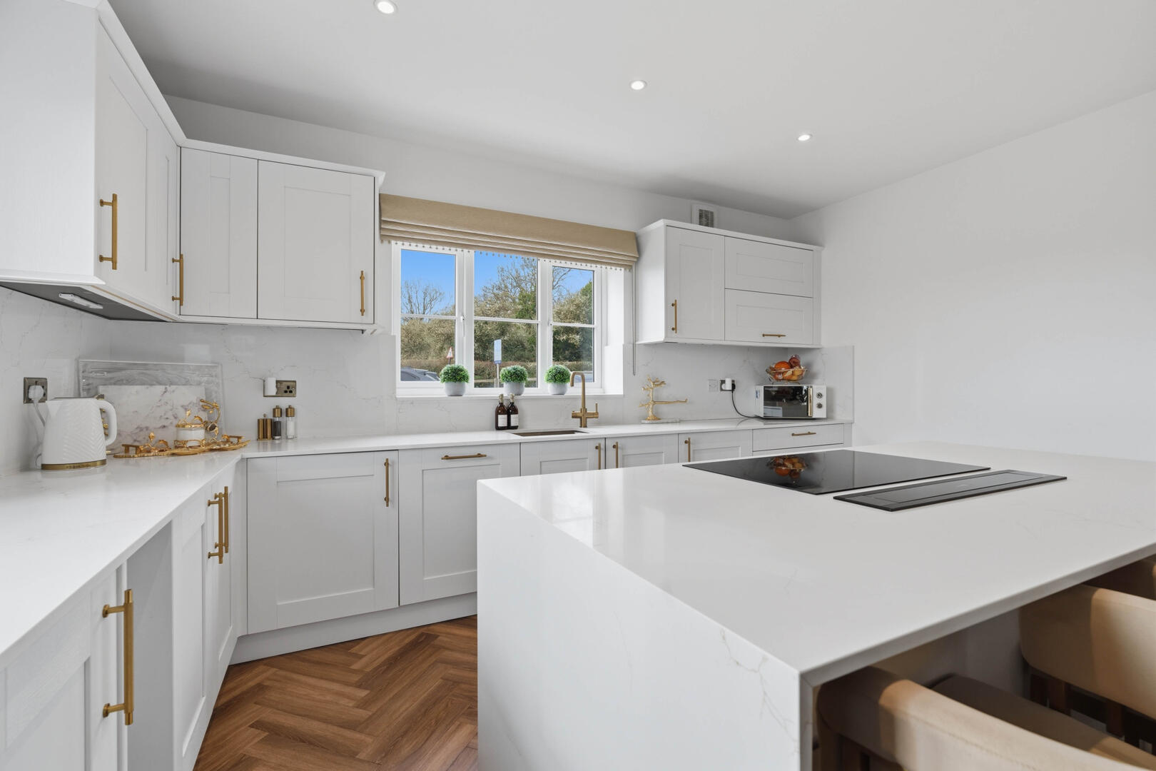This beautifully designed home provides generous and versatile accommodation throughout. The property boasts five double bedrooms, four of which benefit from their own en-suite bathrooms, creating the perfect layout for modern family living. The fifth bedroom is currently utilised as a luxurious walk-in wardrobe, but can easily be reinstated as a bedroom if required.