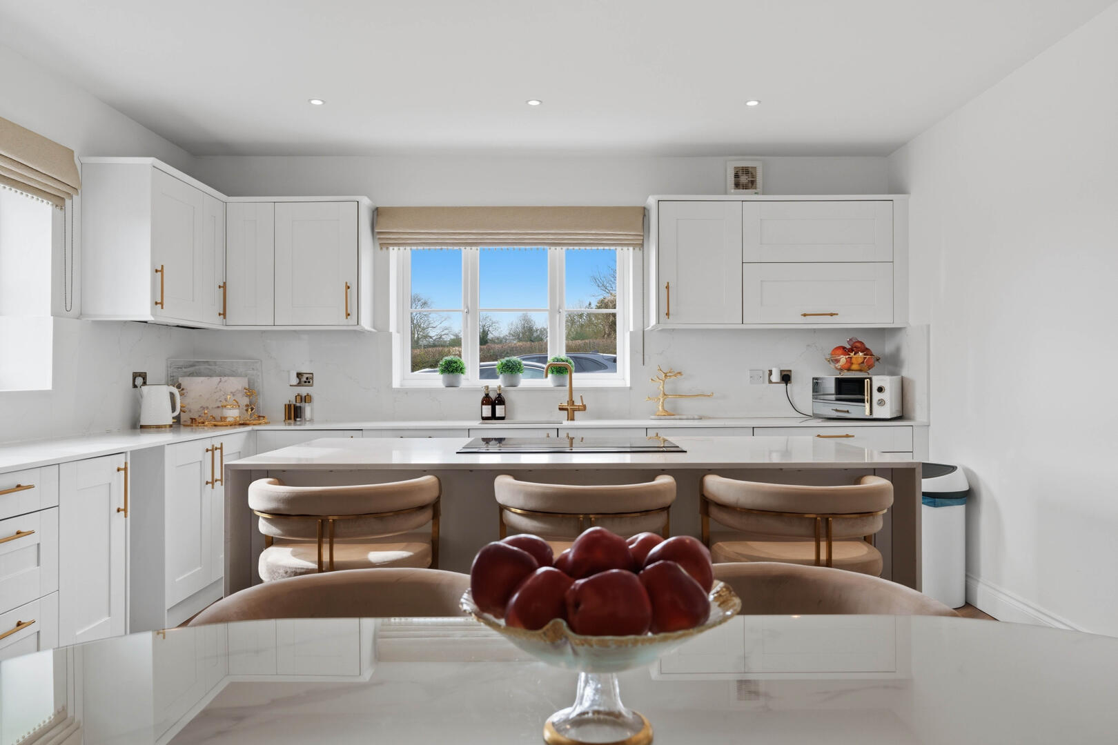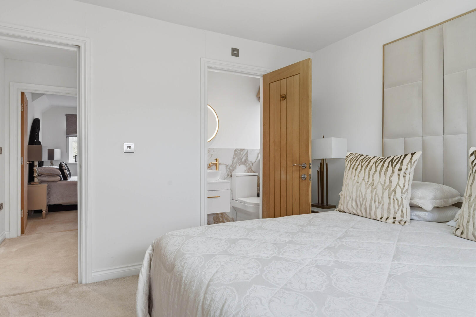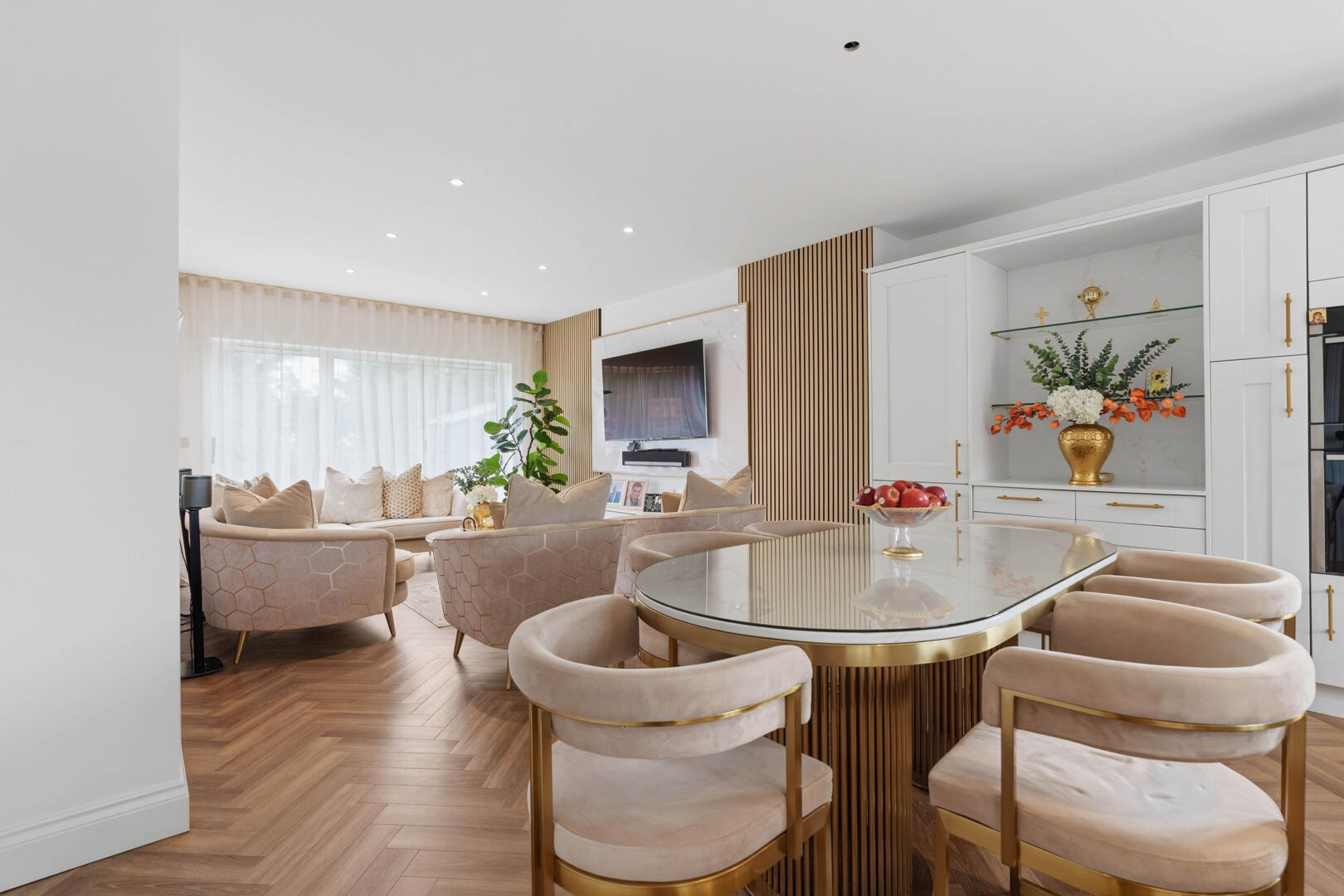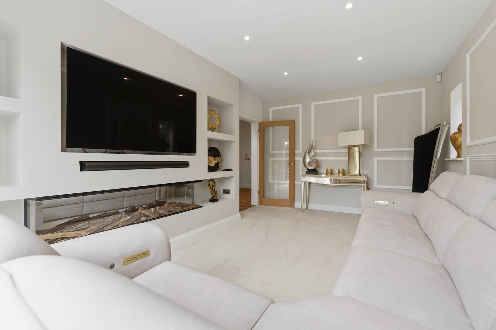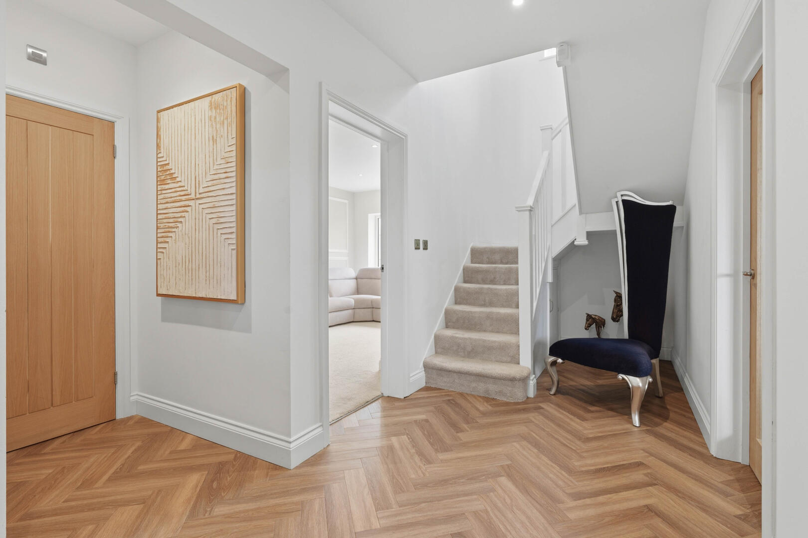 This beautifully designed home provides generous and versatile accommodation throughout. The property boasts five double bedrooms, four of which benefit from their own en-suite bathrooms, creating the perfect layout for modern family living. The fifth bedroom is currently utilised as a luxurious walk-in wardrobe, but can easily be reinstated as a bedroom if required.