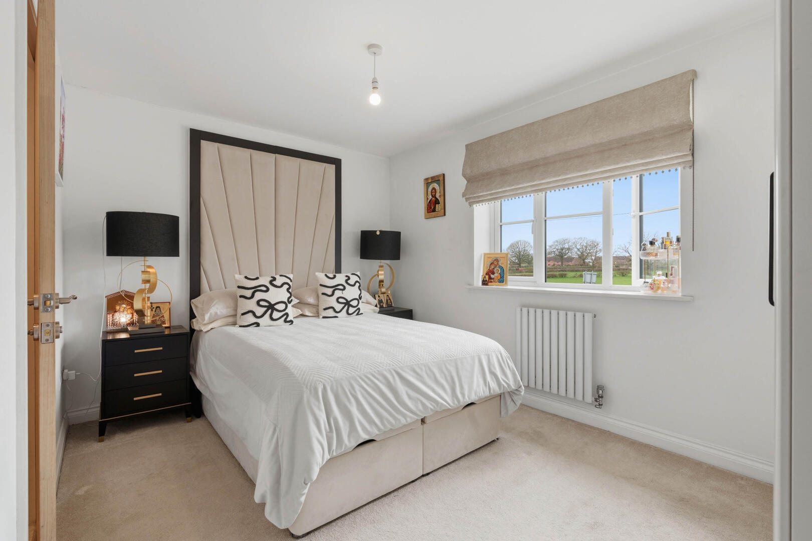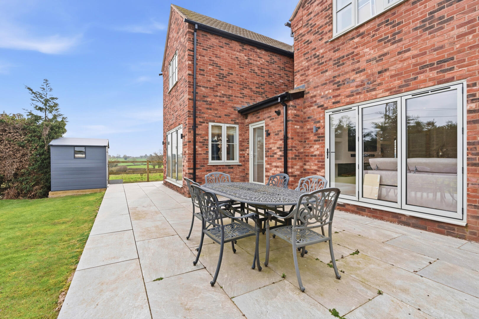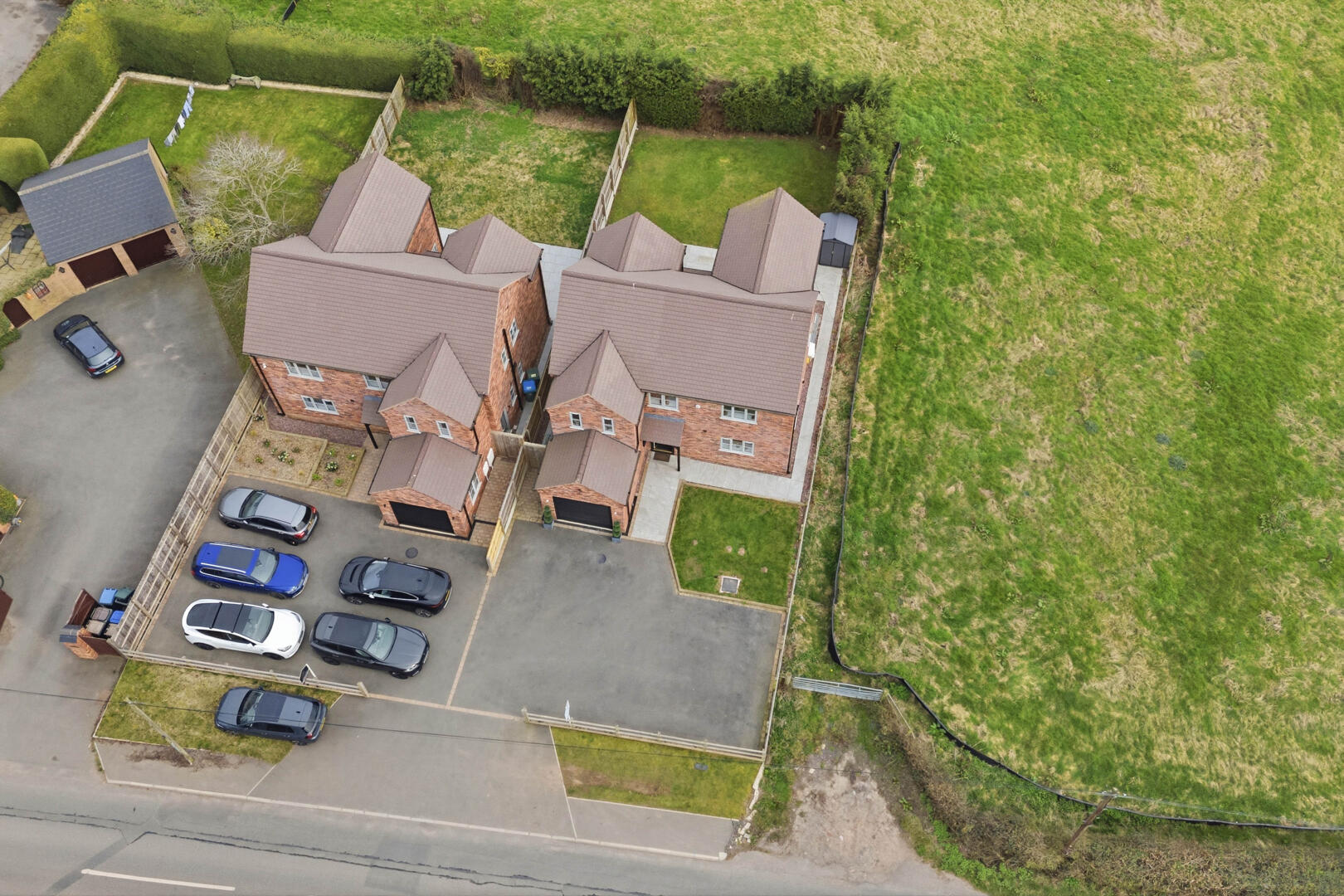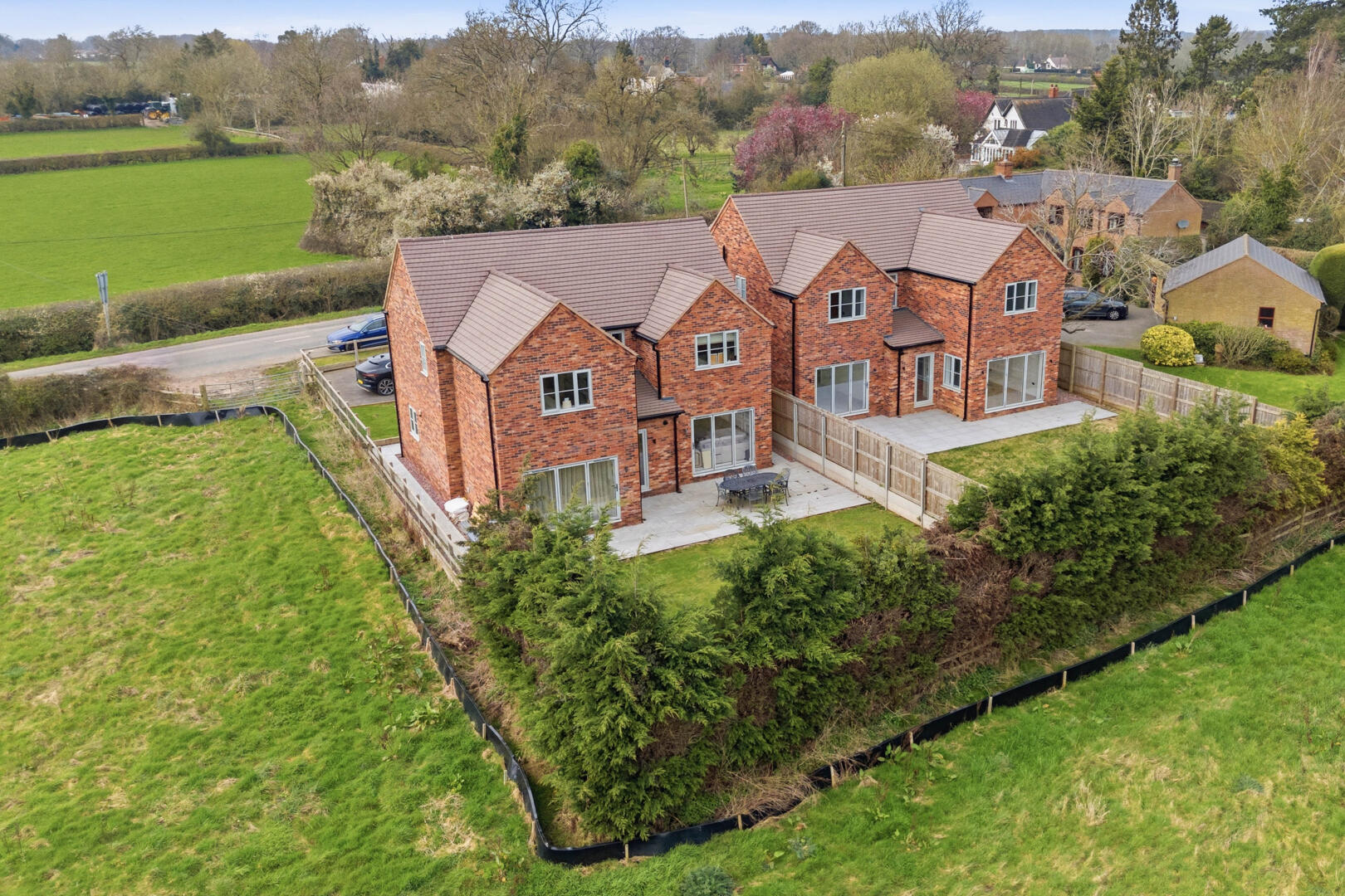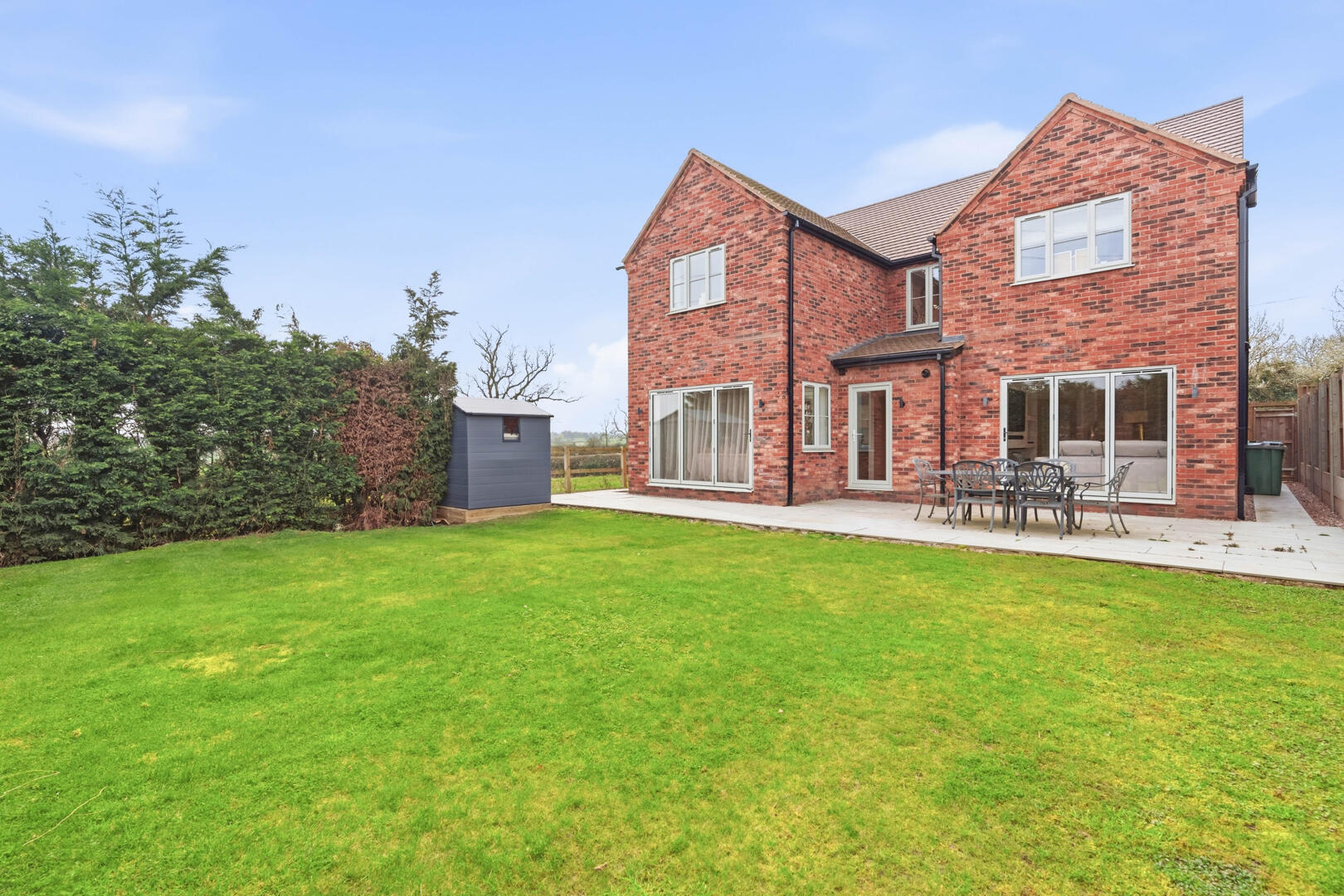 Externally, the property enjoys a large driveway providing ample off-road parking for multiple vehicles. To the rear, the home benefits from uninterrupted views backing onto open fields, offering a high degree of privacy and a truly tranquil outlook.