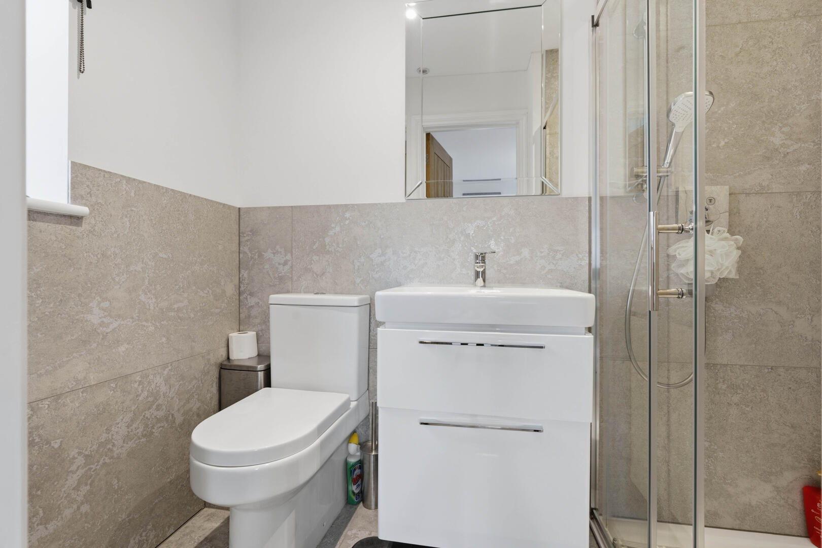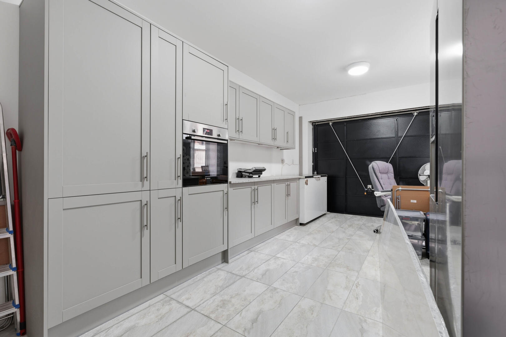 The ground floor offers an impressive open-plan kitchen, dining and lounge space, ideal for both everyday living and entertaining. In addition, there is a separate living room providing a more private space to relax, along with a convenient downstairs W/C. The integrated garage has been thoughtfully enhanced with the addition of a utility kitchen, adding further practicality to the home.