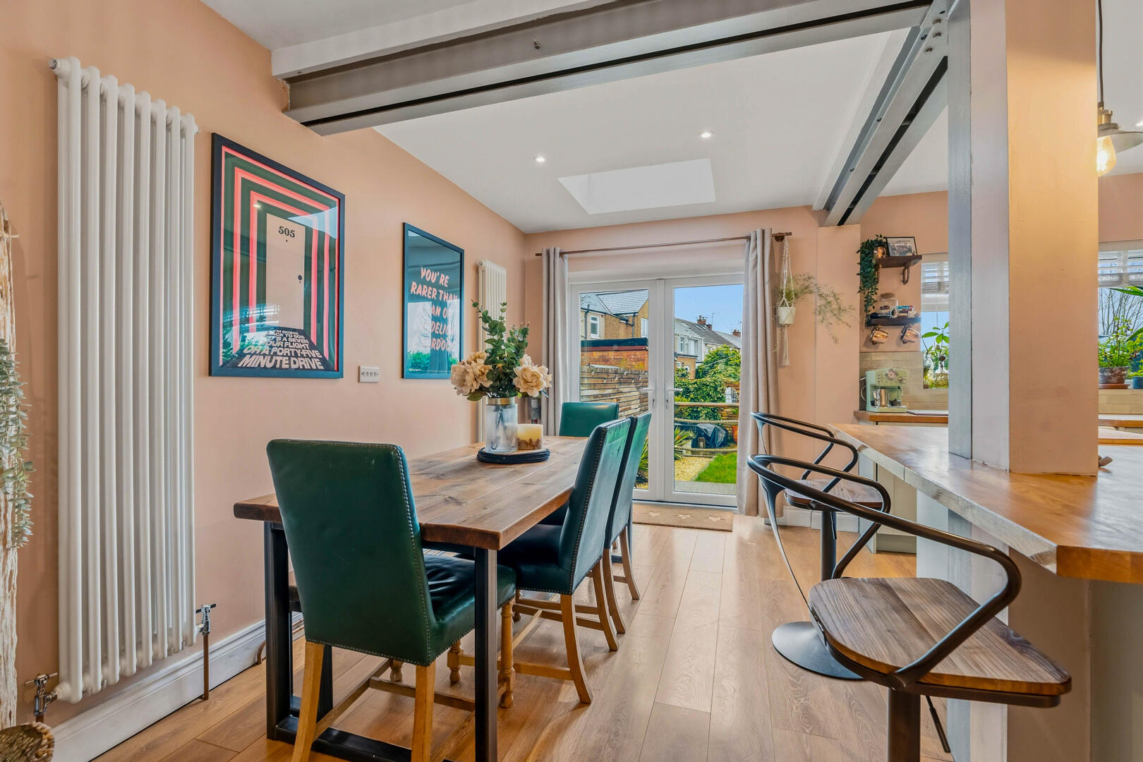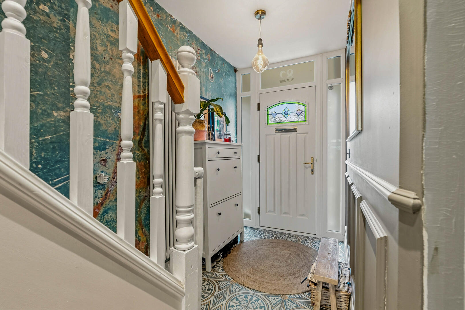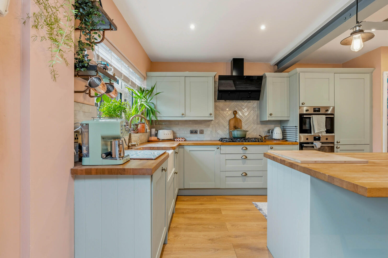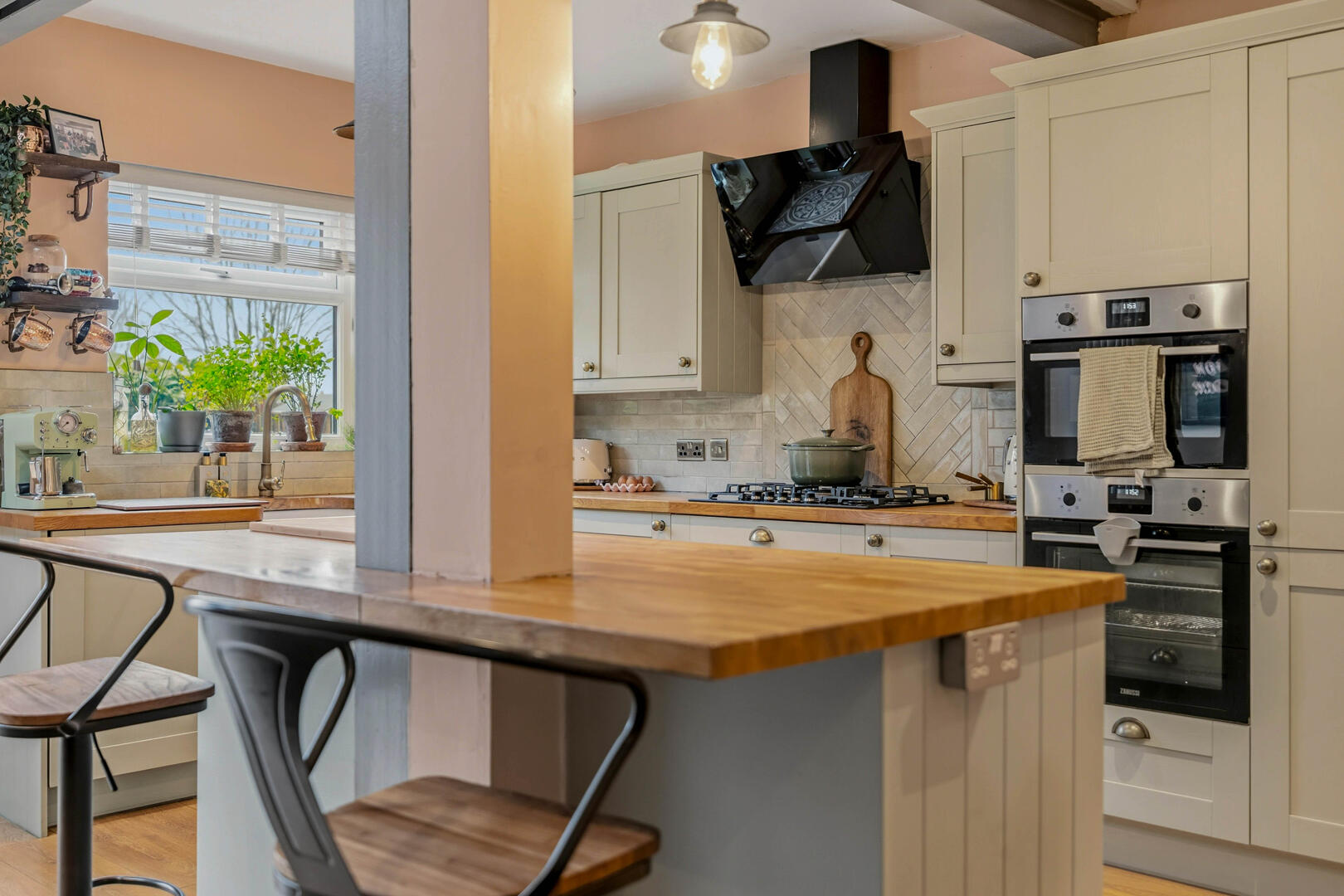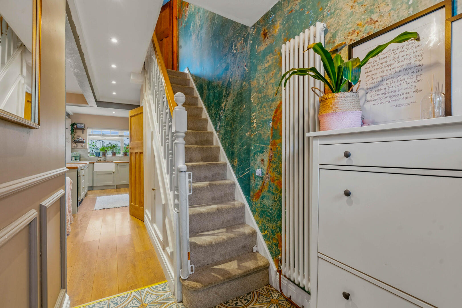 Upon entering, you are welcomed by a bright and inviting entrance hallway leading through to the true heart of the home — a beautifully extended kitchen/diner. Bursting with character, this impressive space benefits from a skylight that floods the room with natural light, fitted appliances, and a charming log burner which adds both warmth and a contemporary touch. The ground floor also offers a convenient downstairs WC. To the front of the property, there is a well-proportioned lounge, thoughtfully separated from the kitchen, featuring a bay window that enhances the sense of space and light.