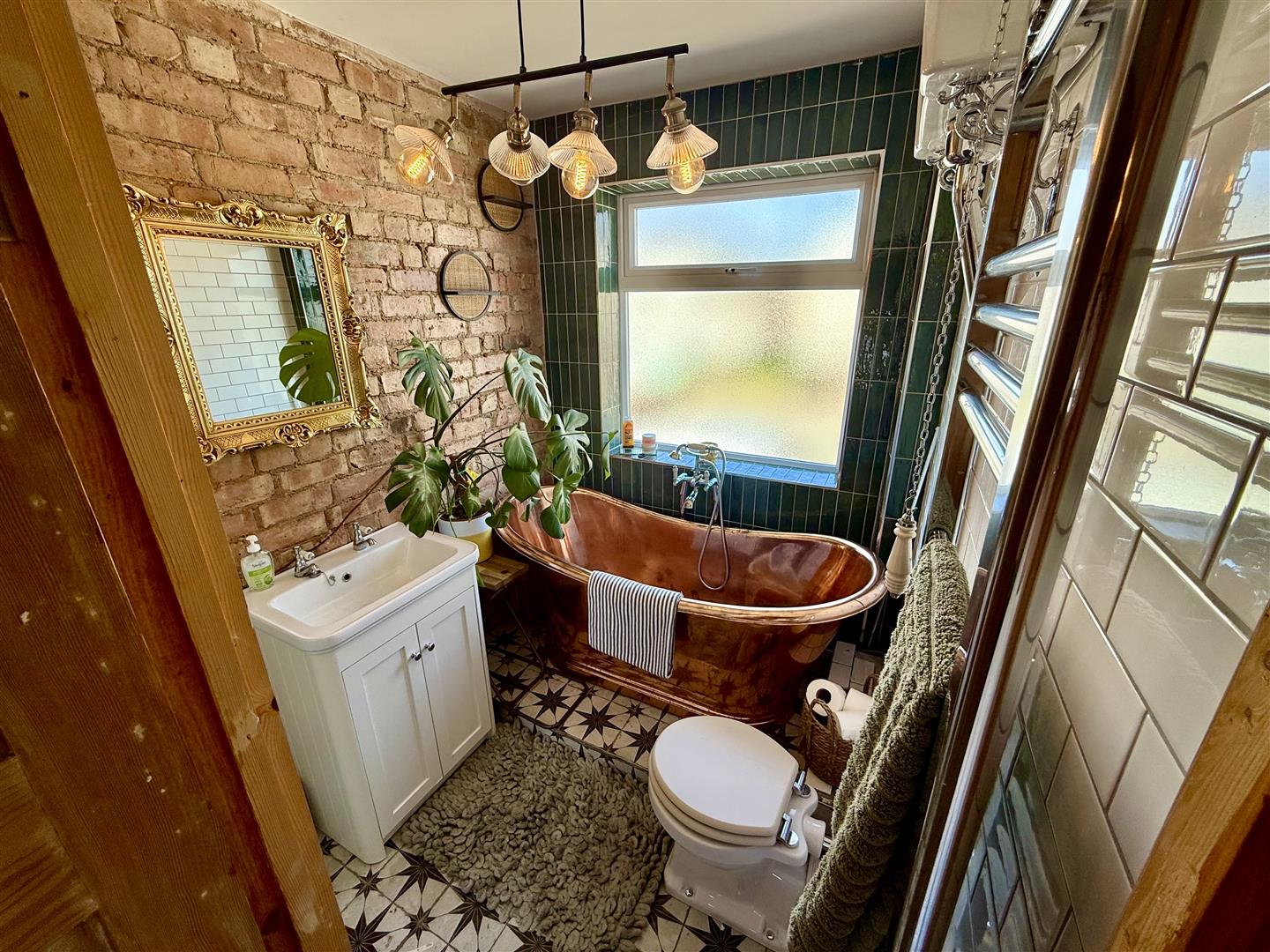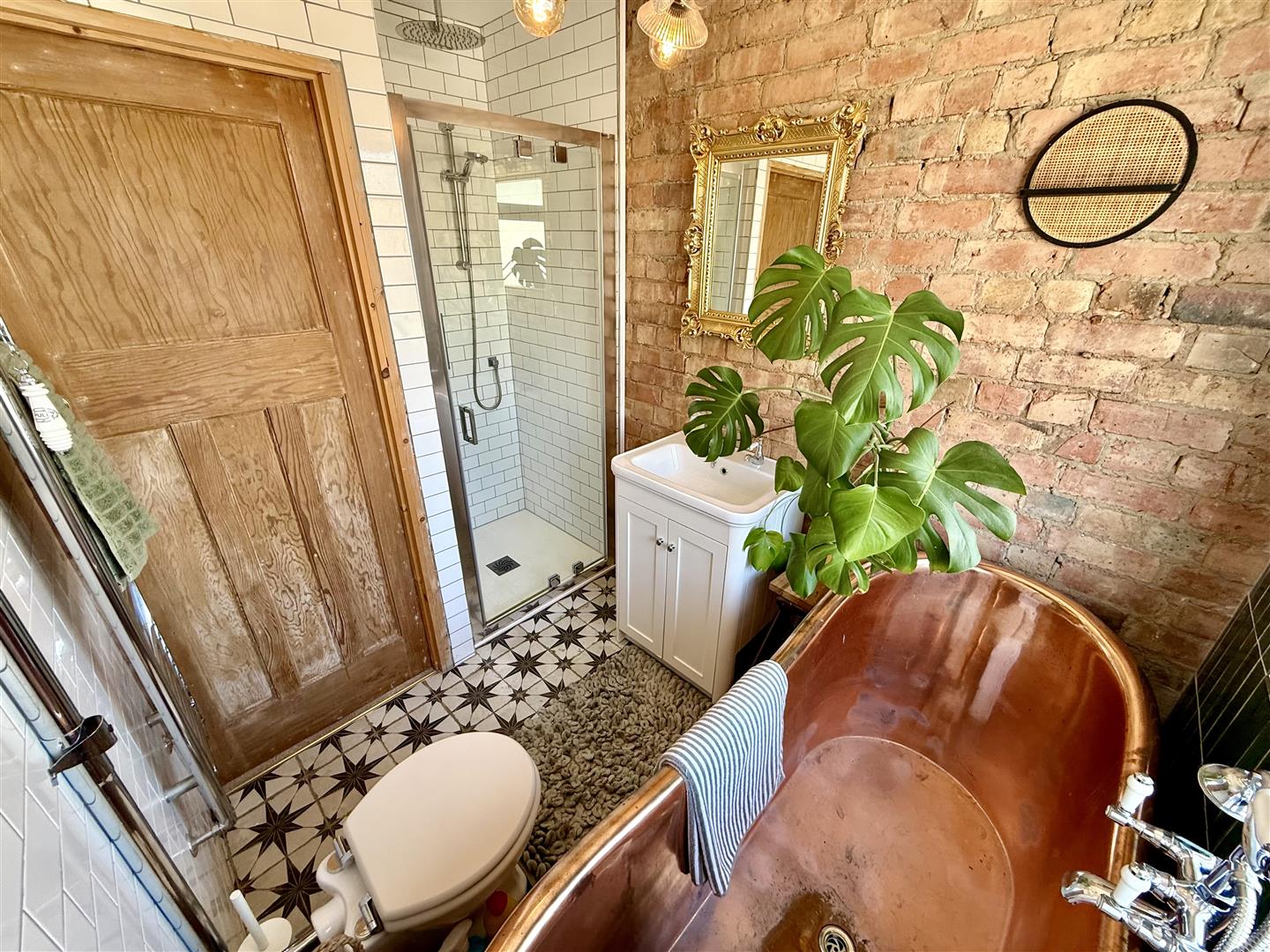 To the first floor, the property comprises two generous double bedrooms, with the principal bedroom benefitting from its own en-suite. There is also a third bedroom and a stunning family bathroom, complete with a freestanding bath and a separate shower, finished to a high standard.