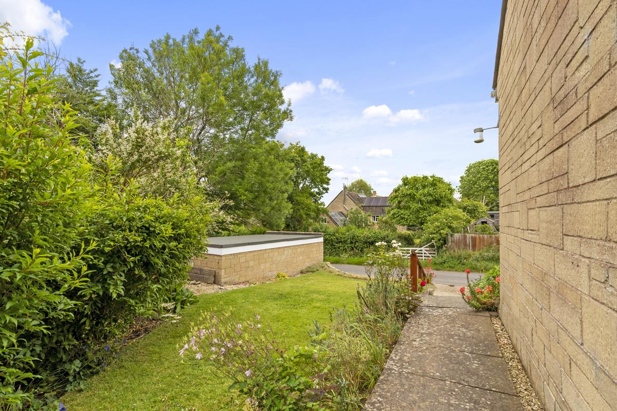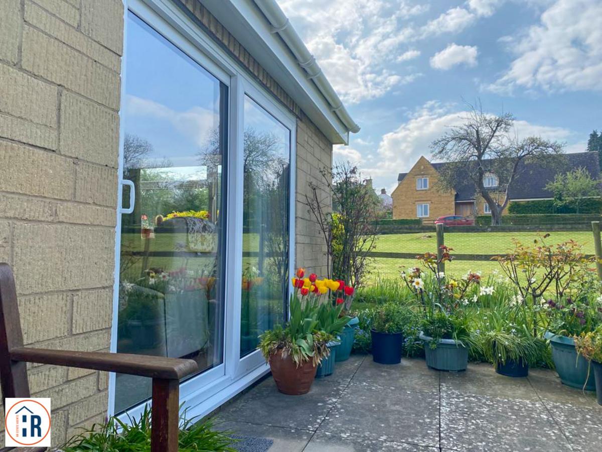 This delightful property features two bedrooms, a well-appointed bathroom, a modern kitchen, a spacious living room, conservatory and a separate garage. Upon entering, the kitchen is immediately to your left, equipped to accommodate a variety of appliances. The hallway leads you to the remaining rooms, including a generously sized lounge area and a newly built conservatory/sun room, ideal for relaxing and enjoying the views. Both bedrooms are fitted with ample wardrobe space. A standout feature of this bungalow is the idyllic views through the newly installed sliding patio doors, which open to a serene, well-maintained garden that captures the tranquil essence of the Cotswolds.